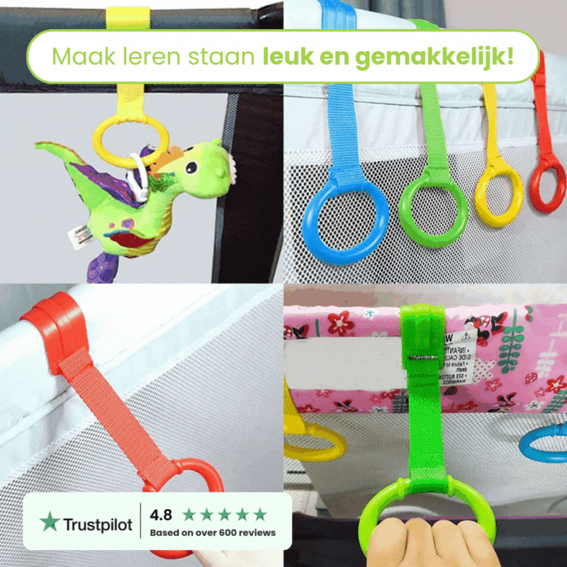 Dan is de BabyLift ™ perfect voor jou! Met deze speciale ringen kan je baby veilig en zelfstandig oefenen met opstaan in de box. De felle kleurtjes stimuleren je baby om te grijpen en te bewegen, wat de motorische ontwikkeling bevordert. Daarnaast zorgen de zachte randen voor een comfortabele grip!