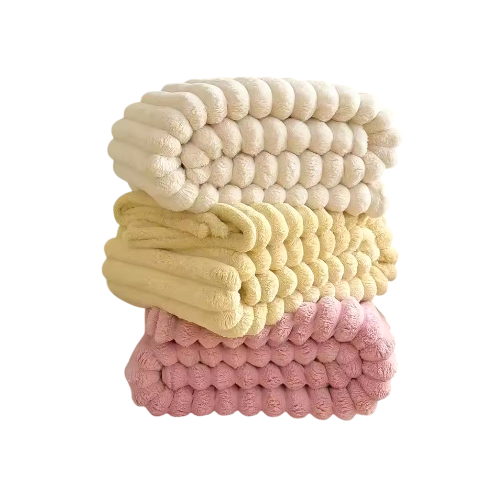 BunnySoft™ biedt blijvende pluizige zachtheid, zelfs na talloze wasbeurten. Of je nu kijkt, sluimert of knuffelt — het voelt als pure ontspanning. Verkrijgbaar in diverse maten - van persoonlijke knuffelmaten tot kamerbrede dekking.