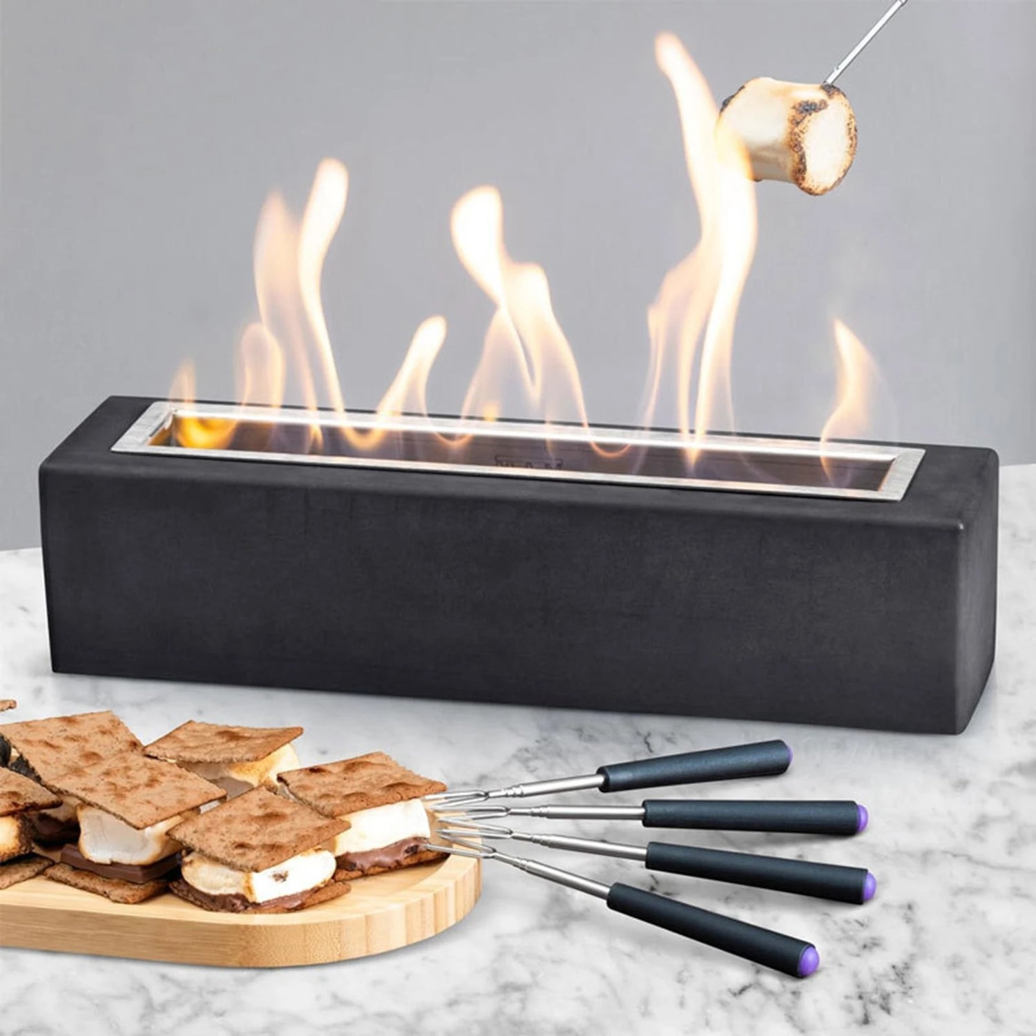 Dan is de FlameBox ™ perfect voor jou! Deze tafelhaard zorgt in slechts 60 seconden voor een sfeervol vuur. Vul hem met bio-ethanol, steek hem aan en geniet van rookvrije warmte zonder vervelende geurtjes! Hierdoor is het makkelijker dan ooit om die gezellige, warme sfeer in huis of tuin te creëren.