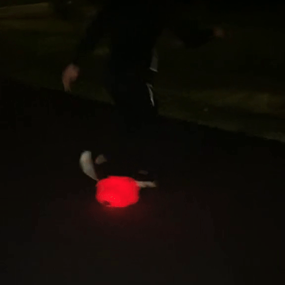 Superleuk! De kinderen hebben uren plezier met de bal en hun lichtgevende joggingpak. Ze vinden het geweldig om in het donker te spelen. Ze willen nu niet meer stoppen met spelen haha