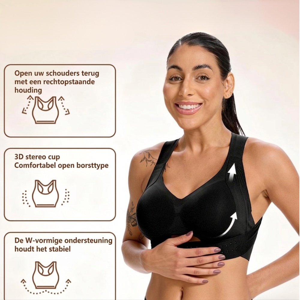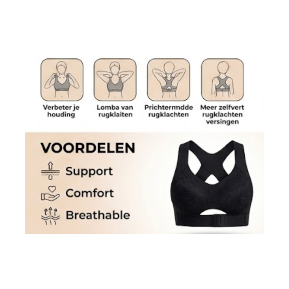 Een ingezakte rug en hangende schouders stralen een gebrek aan kracht uit dat niet te negeren valt. Het beïnvloedt hoe de wereld naar je kijkt, maar bepaalt vooral hoe je jezelf voelt: klein en onopvallend. Deze houdingcorrigerende BH is de noodzakelijke correctie voor de vrouw die onbewust haar zelfverzekerdheid heeft laten varen.