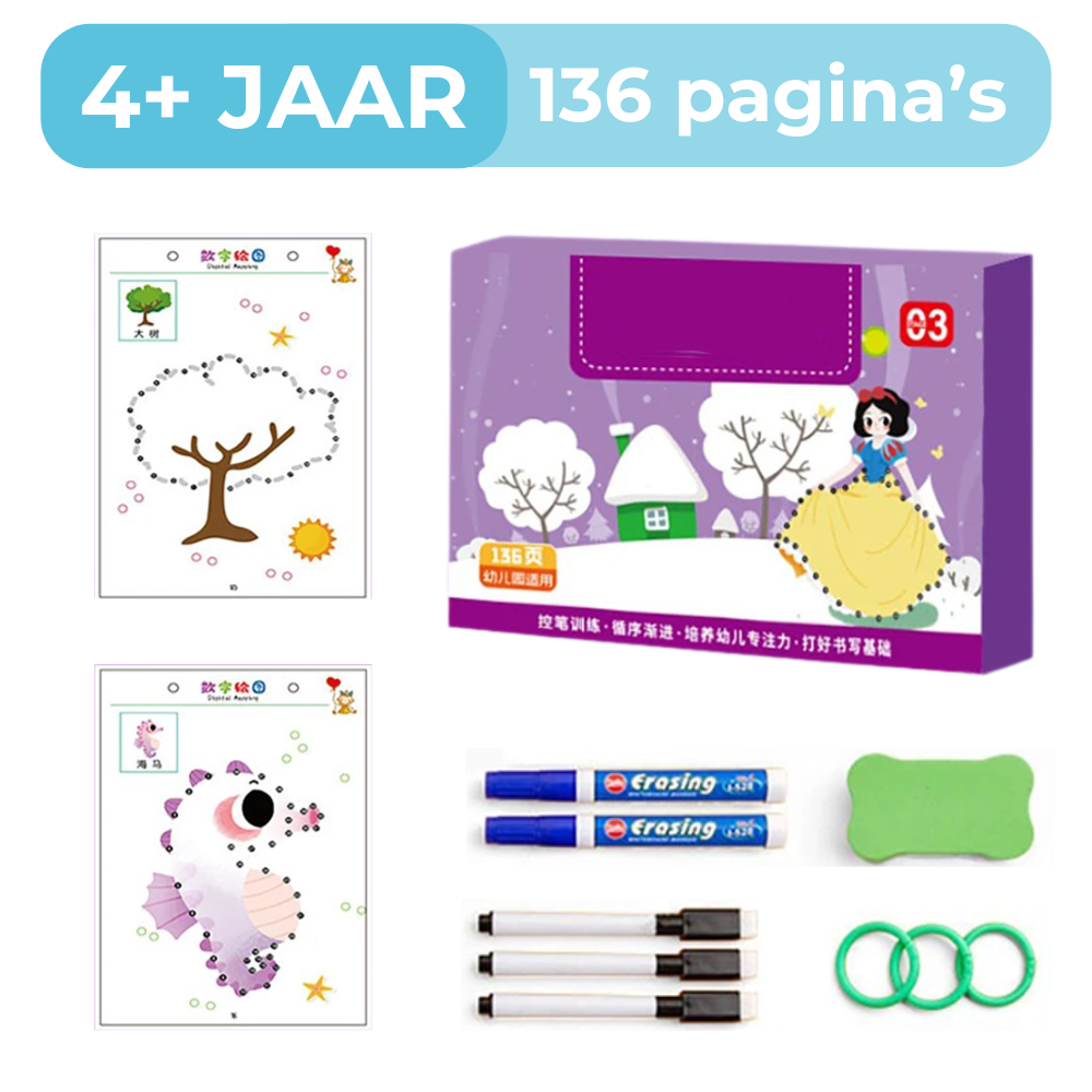 Dan is ons SmartScribble ™ leerboek perfect voor jou! Dit unieke leerboek transformeert de manier waarop kinderen leren, waardoor het een stuk leuker wordt. Het leerboek is een schermvrije oplossing die het mentale welzijn bevordert en essentiële schrijfvaardigheden ontwikkelt, terwijl het ook een gezondere en slimmere manier van leren stimuleert.